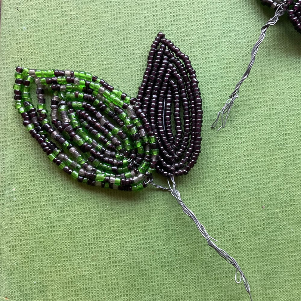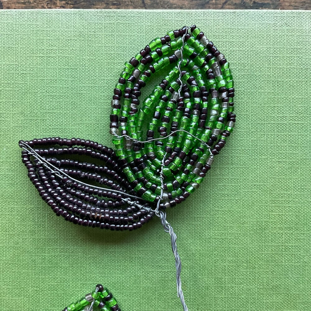 Some lovely old beaded leaves,we bought these from a French antique dealer,they were made once for millinery (hats).
