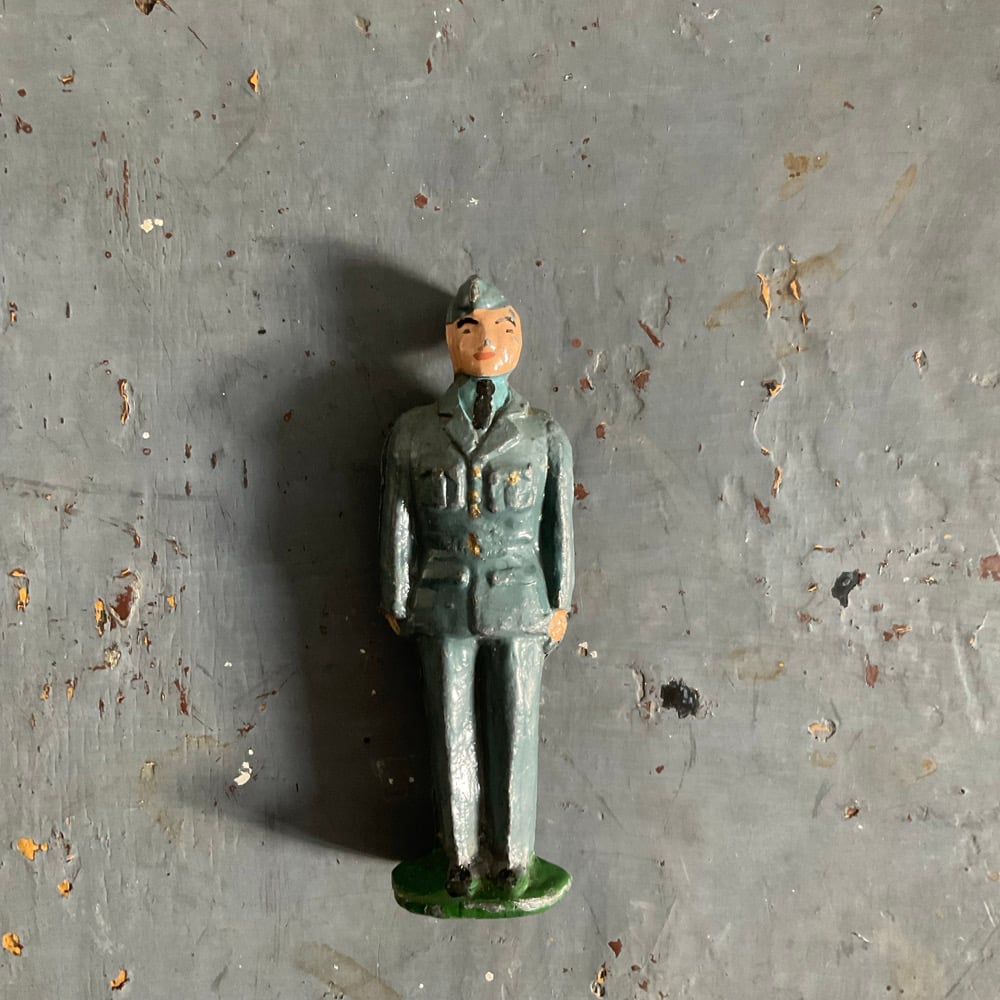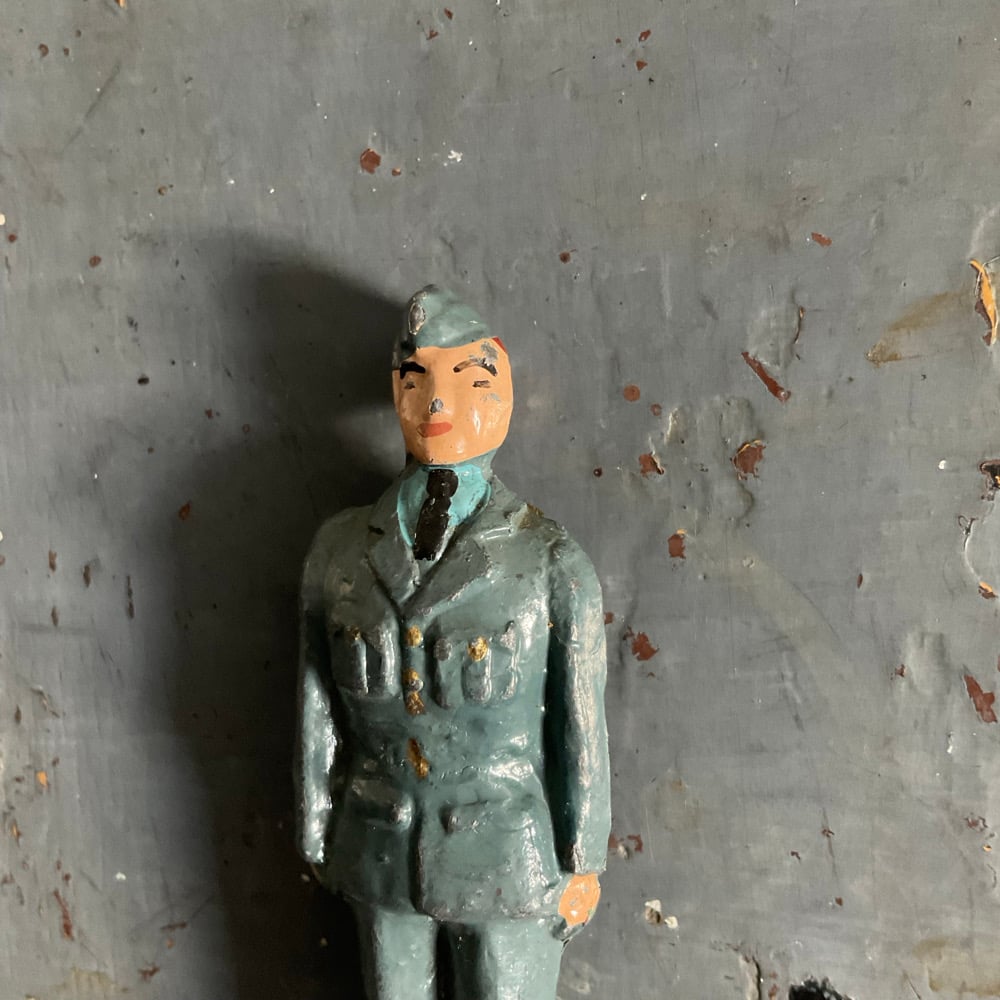 A vintage soldier lead toy,British made with handpainted detail.This is a rarer and older type,some paint wear but a nice one.